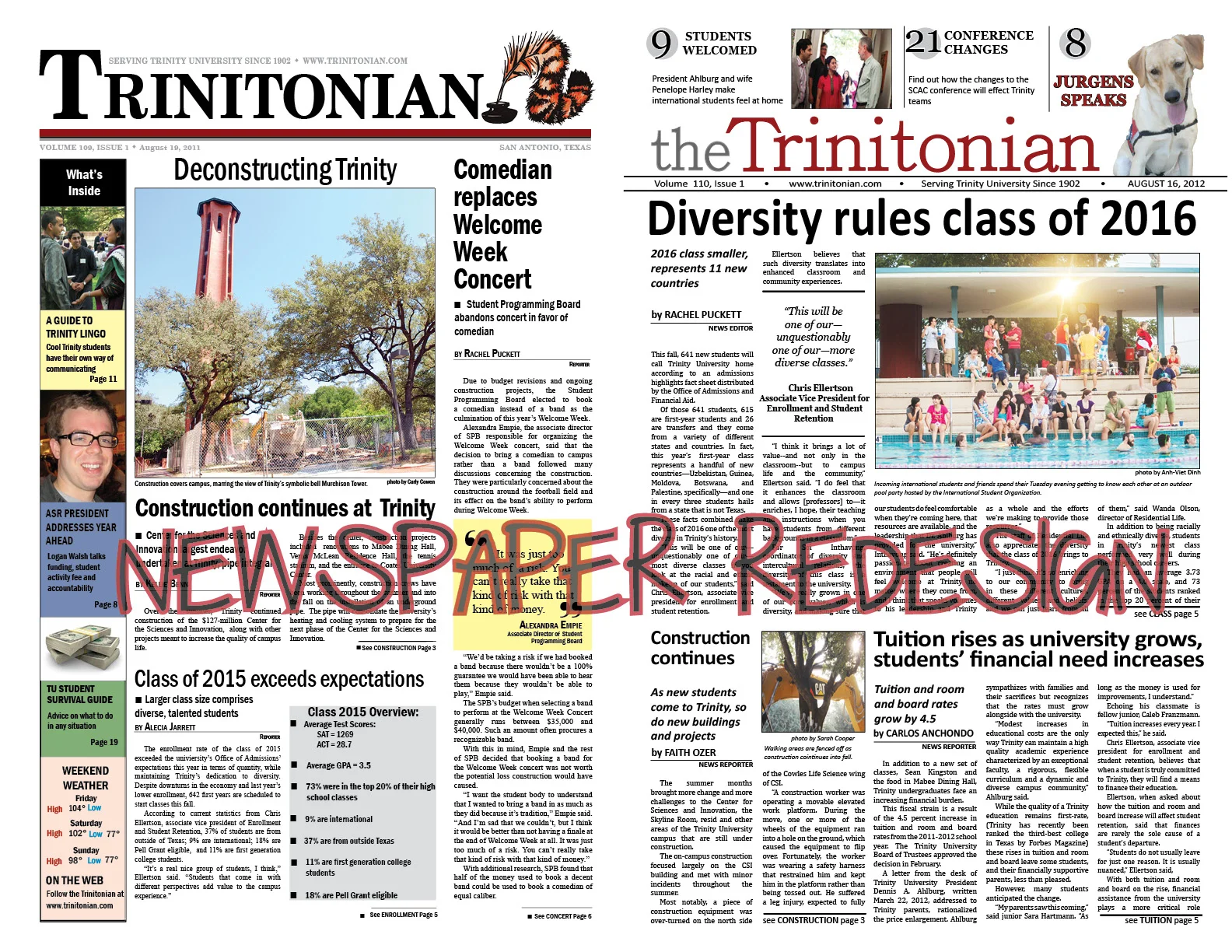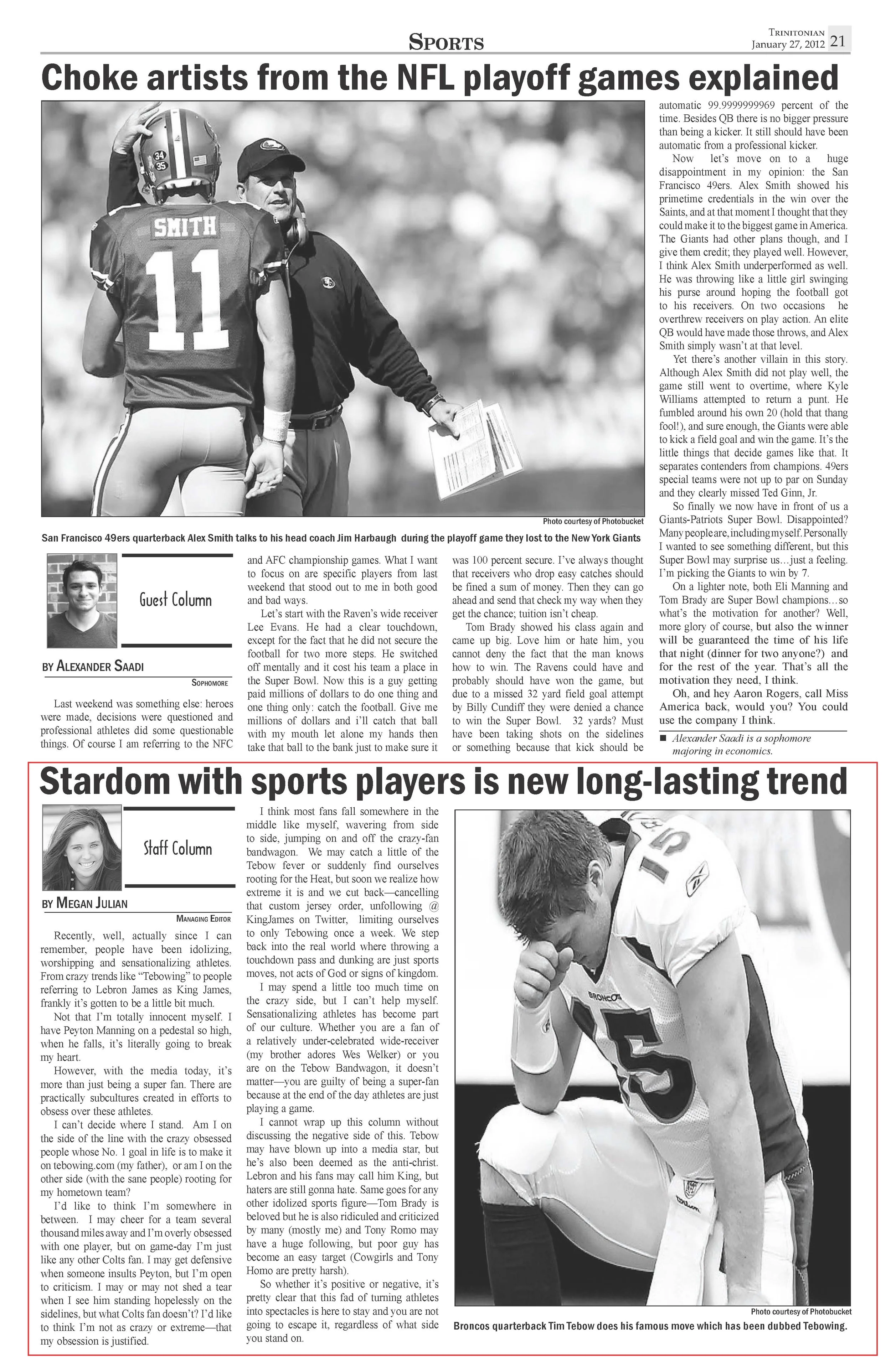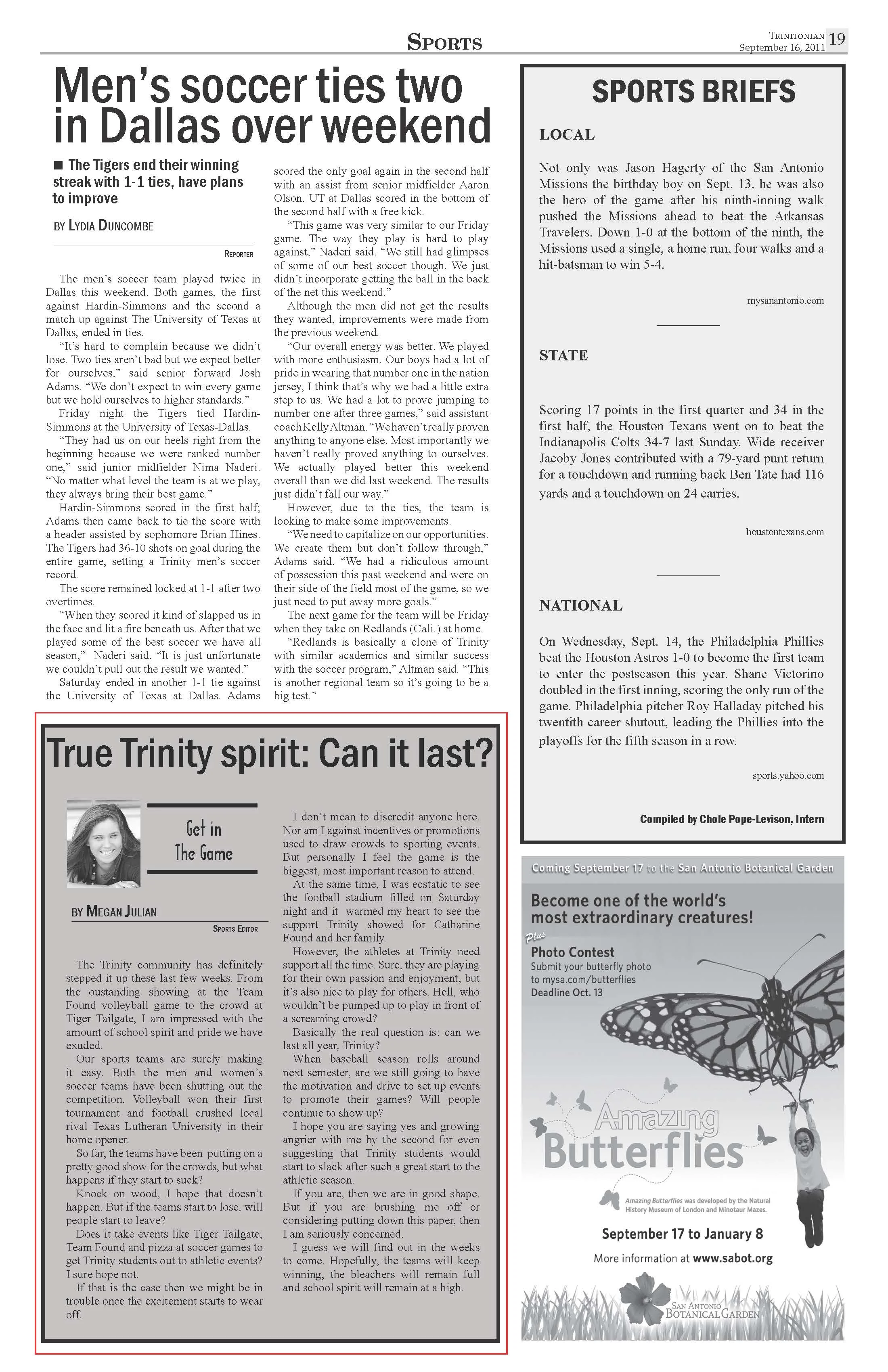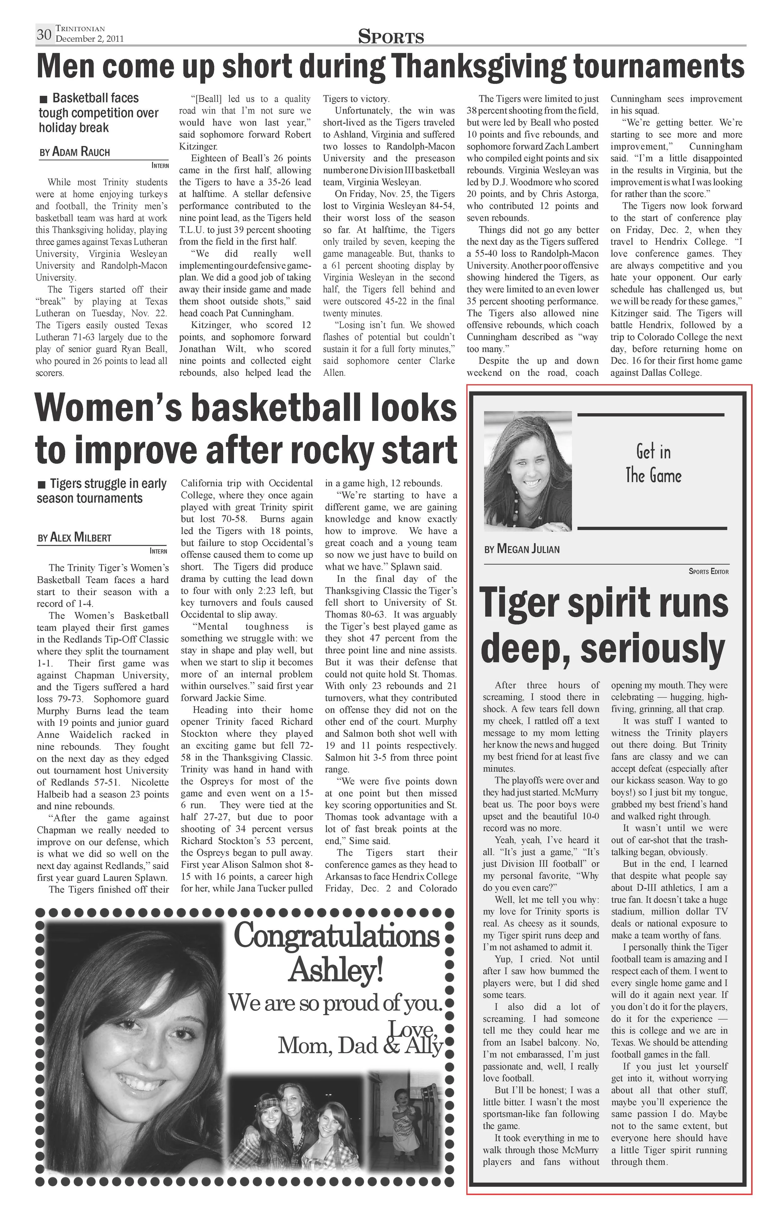 Design work, columns and stories written during my time as Sports Editor and Managing Editor of Trinity University's student-run paper, the Trinitonian. Click thumbnails for larger view.